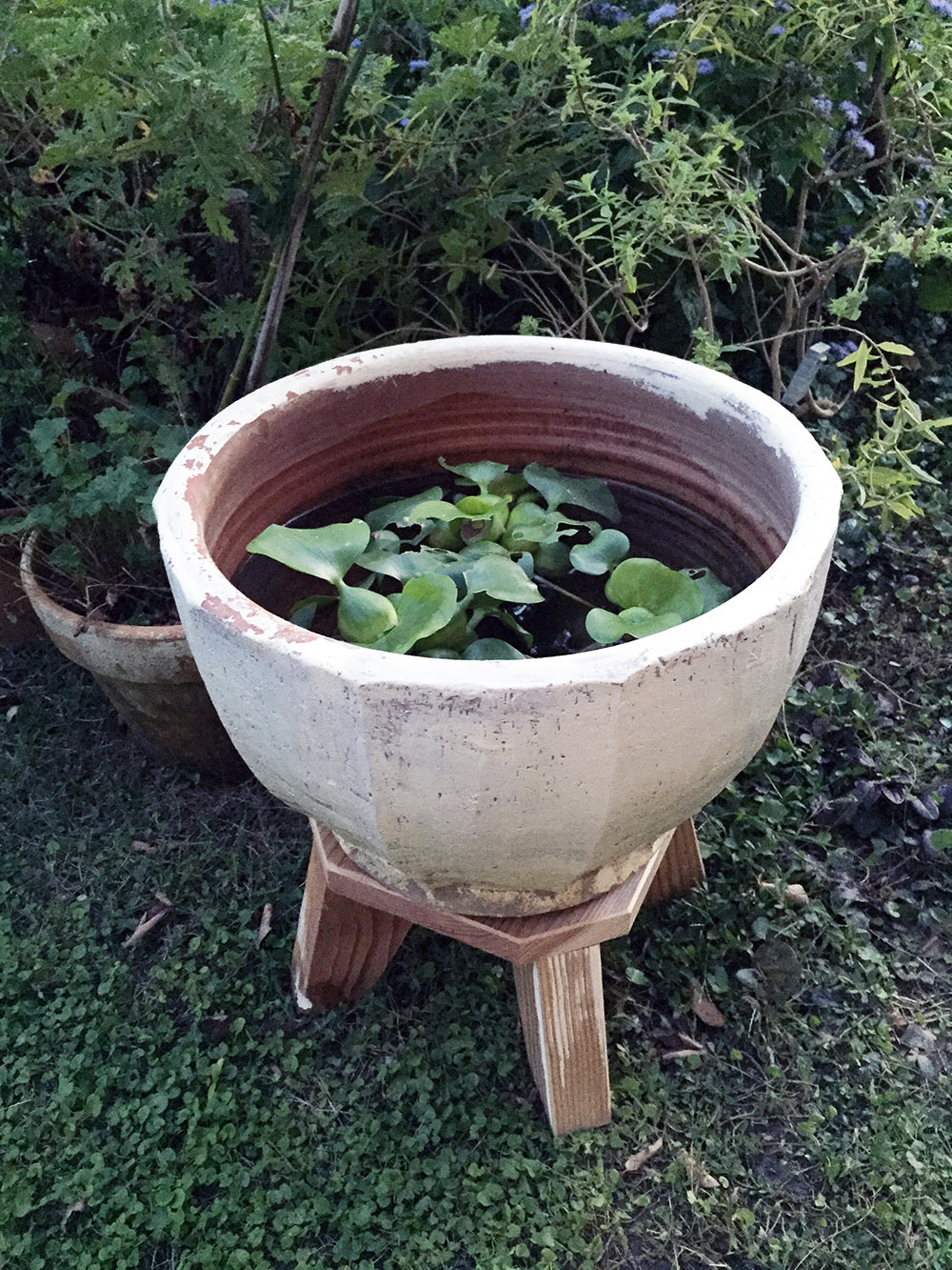 突然思い立って、端材を使って水鉢の台を作ってみました。