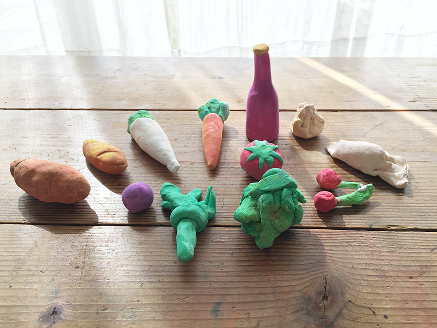先日、娘と一緒に作っておいた紙粘土が固まっていたので