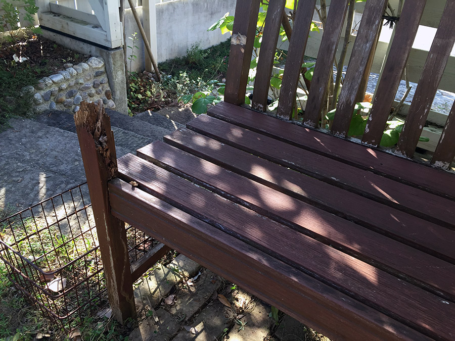 壊れた箇所を取り外して、新しい材木にて取り付けました。