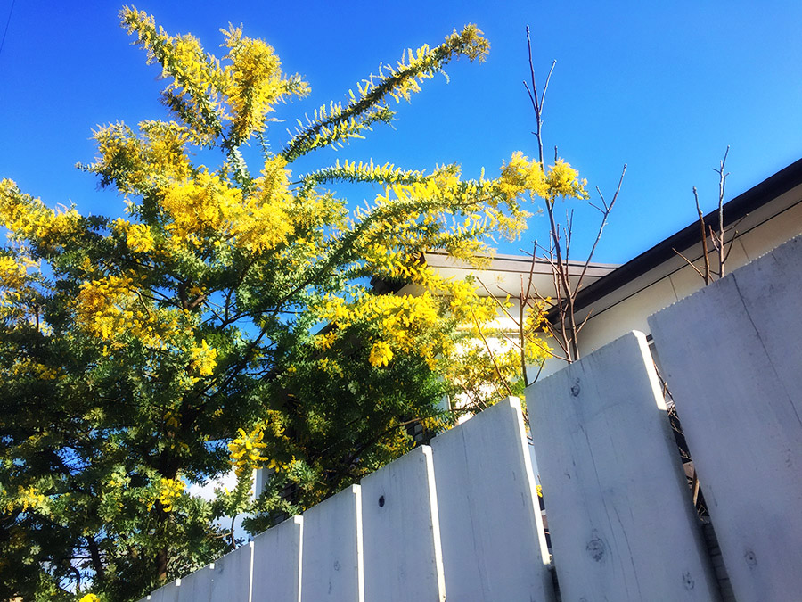 そのたびに、僕が雨具を着てびしょ濡れになりながら、倒れたミモザの木を起こして支え木で安定させました。