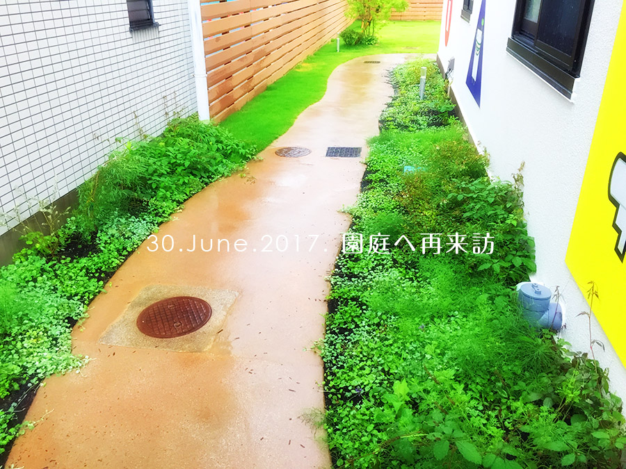 あれから、約2ヶ月半が経過し、植栽や芝生がずいぶんと青々としておりました。植栽を外構に取り入れると、こういった美の変化も楽しめます♪