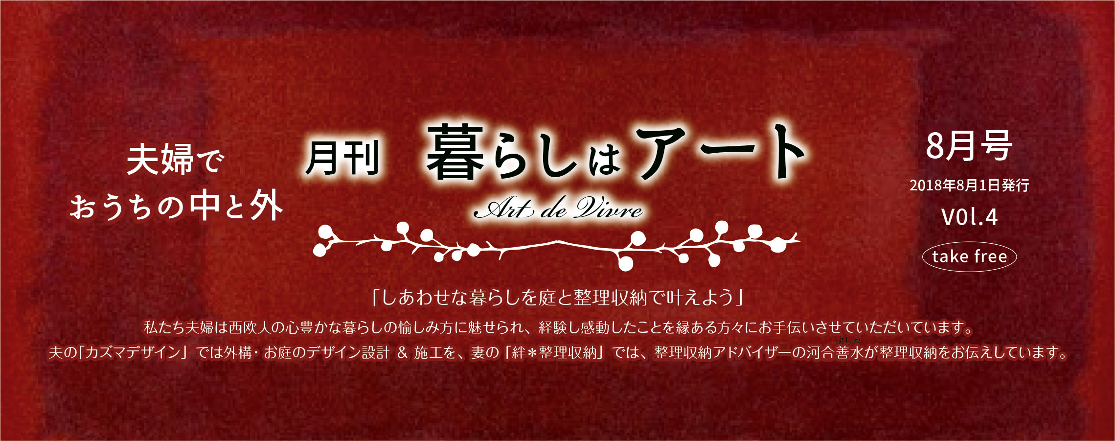 大変遅くなりましたが、 毎月夫婦で発行しています、月刊「暮らしはアート」8月号です。
