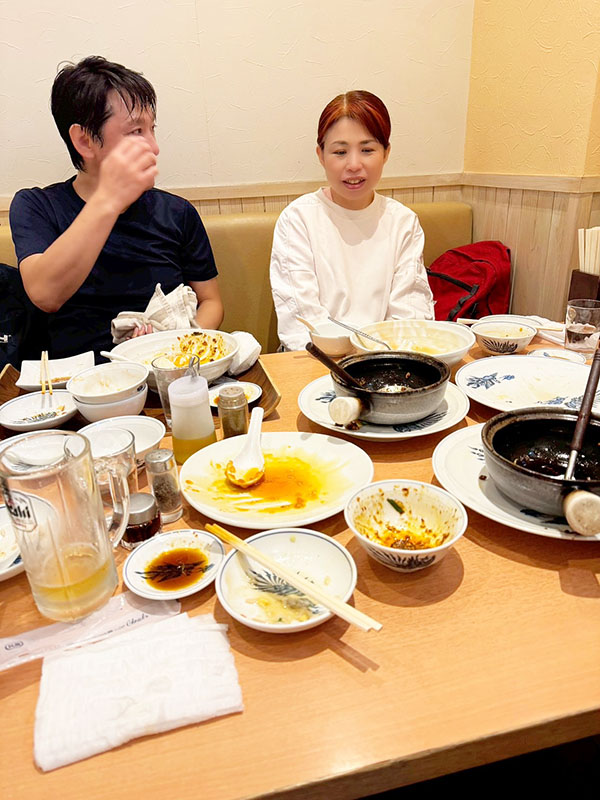 ゆる登山後にメンバー一緒に食べた激うまの四川麻婆豆腐を食べて、滝のように汗を流していた僕は、皆に笑われていましたよ。