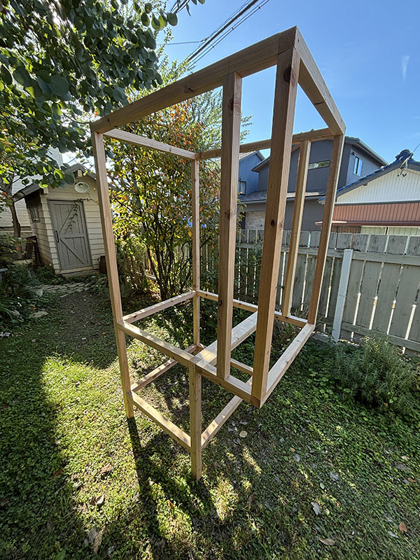 骨組みの段階で、現場に仮に設置してみて、ピタっとはまるか実験します。
