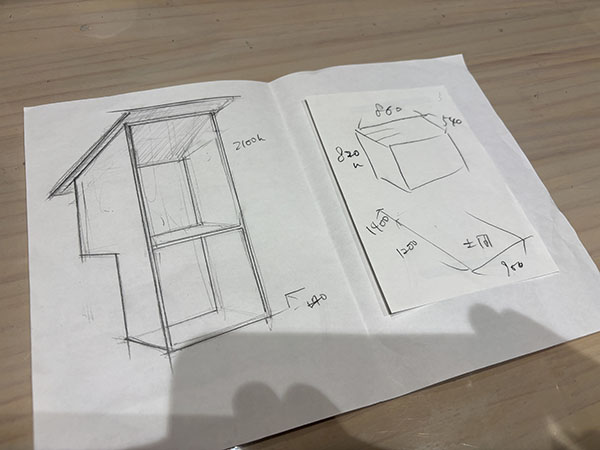 まずは、完成イメージをラフスケッチ。ざっくりとサイズも把握します。