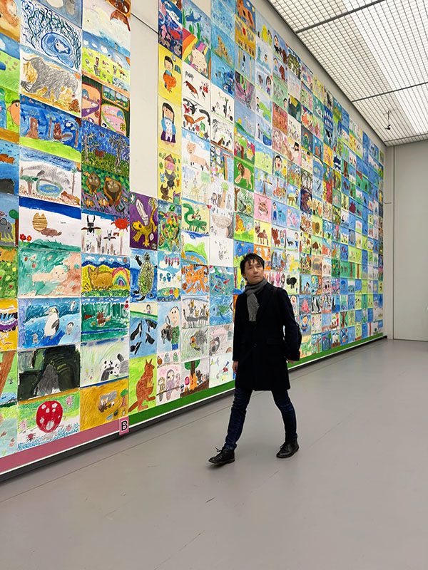 壁一面を埋め尽くす、小学生たちの膨大な作品数。